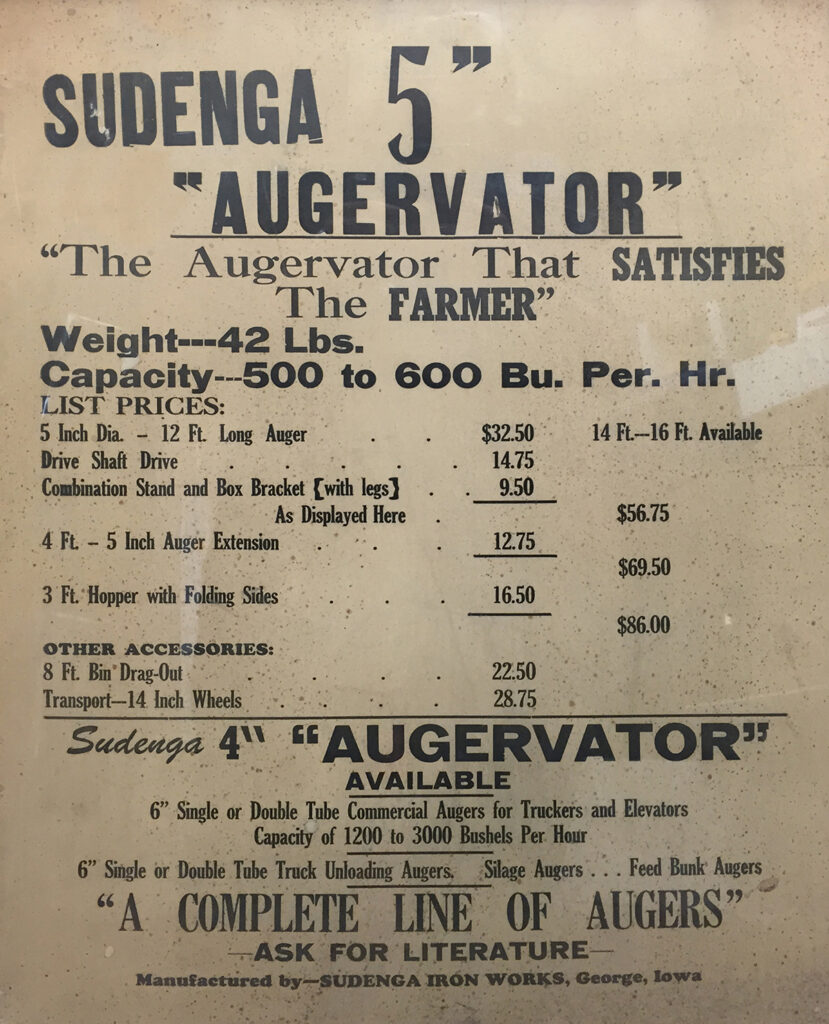 From there, product development was driven by real needs in the field. Early innovations focused on labor-saving solutions for farmers, including wagon components, corn picker blowers, and the introduction of the “Augerator” in 1950, designed to replace manual grain handling. As demand grew, so did capabilities. By the mid-1950s, operating as Sudenga Iron Works, the company expanded into transport augers and additional equipment for agriculture and commercial use.